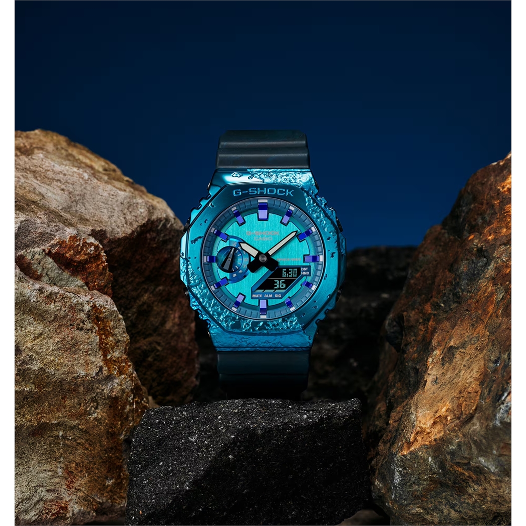 G-SHOCK 40. Yıl Dönümü Adventurer's Stone sınırlı üretim | Antik çağlarda denizcilerin yolunu bulmak için kullandığı minerallerin özel renkleri, her metal çerçeveye eşsiz bir görünüm kazandıran dövme, iyon kaplama ve maskeleme işlemleriyle tasarlanmış